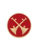 2 Bugles Crossed (Dist Chief) in 3/4″ Red Round Disc Gold Finish